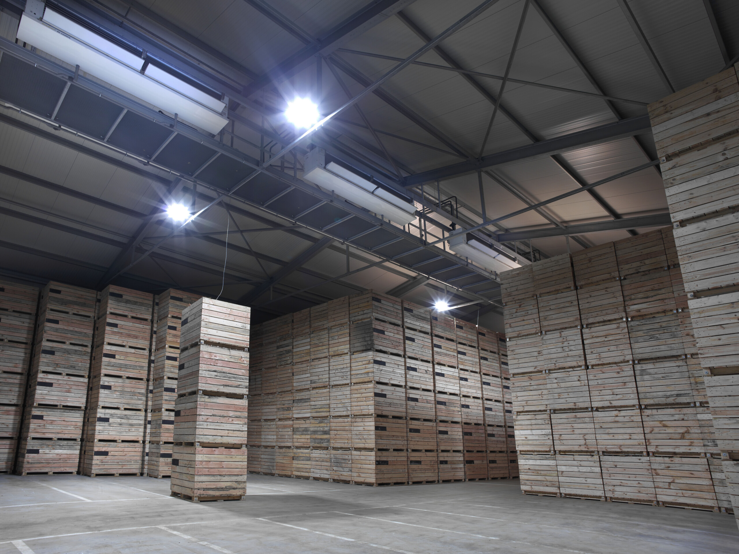 Ein ausgeklügeltes Pumpensystem steuert 32 Verdampfer, die sorgfältig über die beiden Kartoffelhallen und das Karottenlager verteilt sind. So wird sichergestellt, dass das Gemüse keine Chance zum Austrocknen bekommt. In Zusammenarbeit mit einem Drittunternehmen wurde das Kartoffellagerung außerdem mit einer Stützlüftung ausgestattet. So sorgen wir bei Koning Koudetechniek für Temperatur und Luftfeuchtigkeit auf deutschem Niveau.