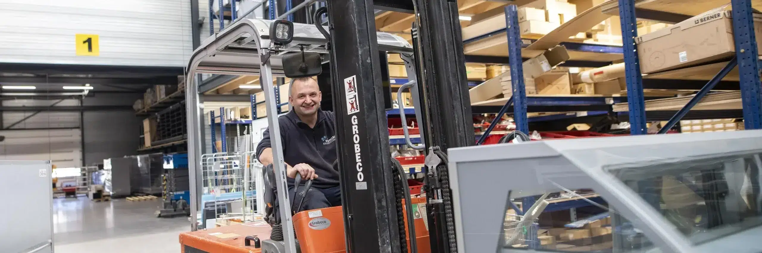 ‘Dat vraagt mijn vrouw ook vaak aan me,’ lacht Michal. ‘En het antwoord is ‘van alles’. Mensen denken nog wel eens dat ik de hele dag op de heftruck zit, maar dat is niet zo. Natuurlijk, als de vracht binnenkomt moet je binnenkomende goederen wegzetten. Maar het is vooral met je handen werken en goed nadenken.’.